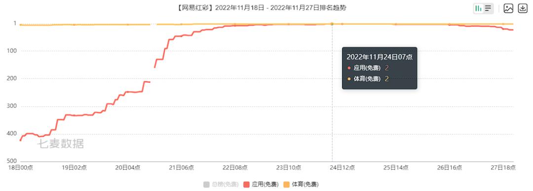 「网易红彩」是网易推出的竞彩售前服务App,世界杯开幕后其在App Store应用免费榜排名逐步提升,最高占据榜单Top2: