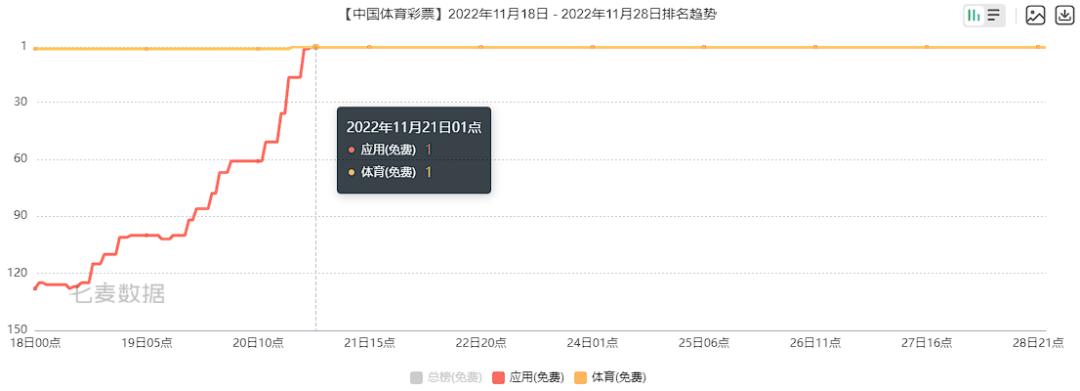 作为国家体育总局 官方出品的竞彩信息平台, 「中国体育彩票」在 世界杯开幕当天App Store应用免费榜排名直升66位,连续数日占据榜单Top1: