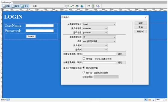 下图是笔者使用 DreamWeaver 来生成一个简单的登录模块,只需要设定一下数据表字段,即可生成表单,完成登录判断和跳转功能。