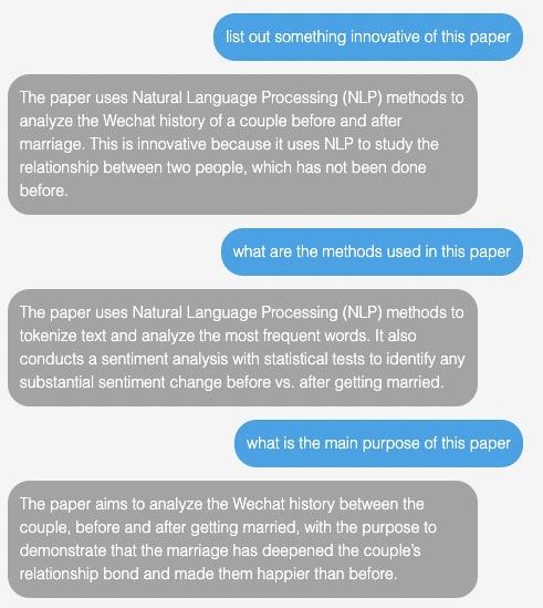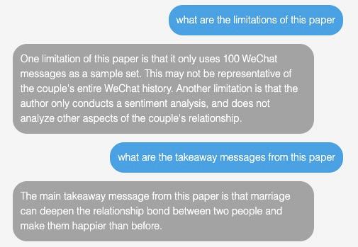 更神奇的是,当我问完 AI 该论文的局限性后,它不只是基于文章原有的内容给出总结,它提到我在证明婚后比婚前更幸福的时候只用了“情感分析”这一个角度,并没有从其他角度去证明。我很惊讶,这确实是一个需要改进的地方。
