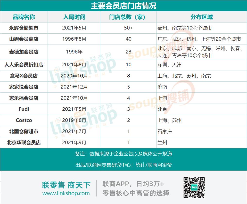 据联商网零售研究中心不完全统计,目前全国入局仓储会员店的企业至少有11家,门店数量超过150家。