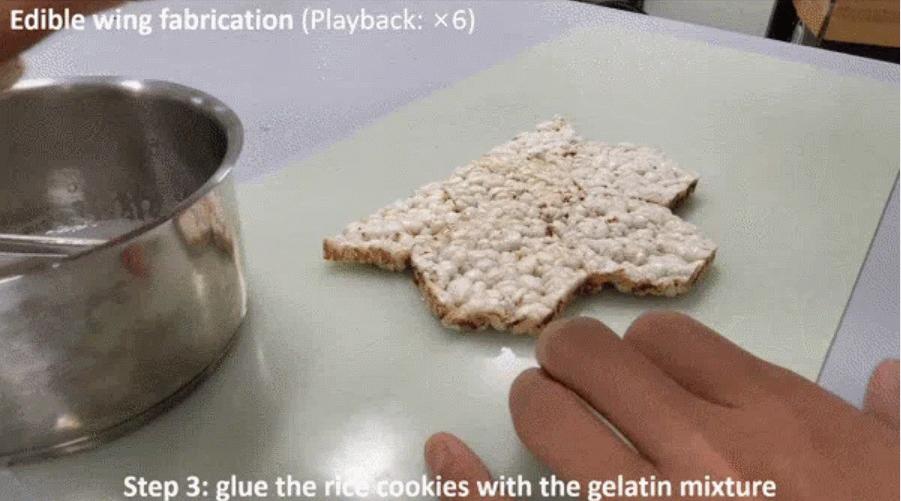 这款无人机还处于原型阶段,机翼由米饼制成,关键时刻,你可以把它吃掉。
