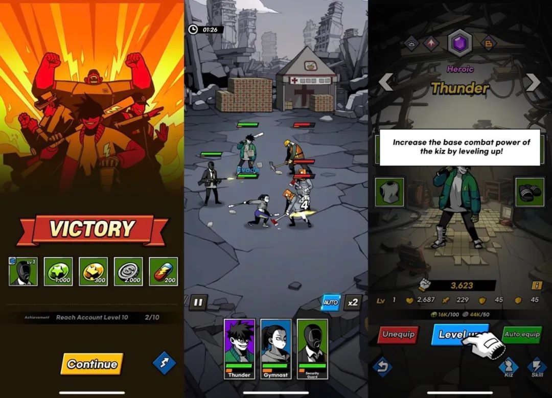 就游戏本身而言,笔者最大的感受是,机制比其他放置类 RPG 还“自动”,同时突出了漫画般的演出效果和剧情特色。