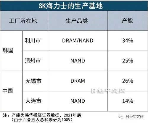 韩华投资证券的统计显示,在SK海力士的产能(按晶圆数量计算)中,无锡工厂占26%,大连工厂占14%。以少品种、大量生产为前提的半导体存储芯片业务如果不持续进行设备投资,竞争力就会下降。如果现阶段占4成产能的中国工厂无法更新设备,SK整体的竞争力很可能大幅下降。