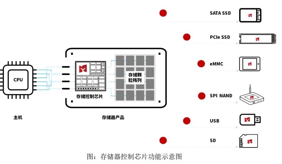 U盘或是相机里的SD卡等存储产品,拆开来看就是存储控制芯片和存储颗粒阵列。后者负责存储数据,前者则是起到管理调度的角色,还负责和CPU进行通讯和数据交换。得一微在该领域的下游客户涵盖松下电器、长江存储、兆易创新、紫光展锐、阿里巴巴、FLEXXON、创维集团、九联科技、 长虹电器、朗新科技、三一重工、天邑康和、中兴通讯、国家电网。