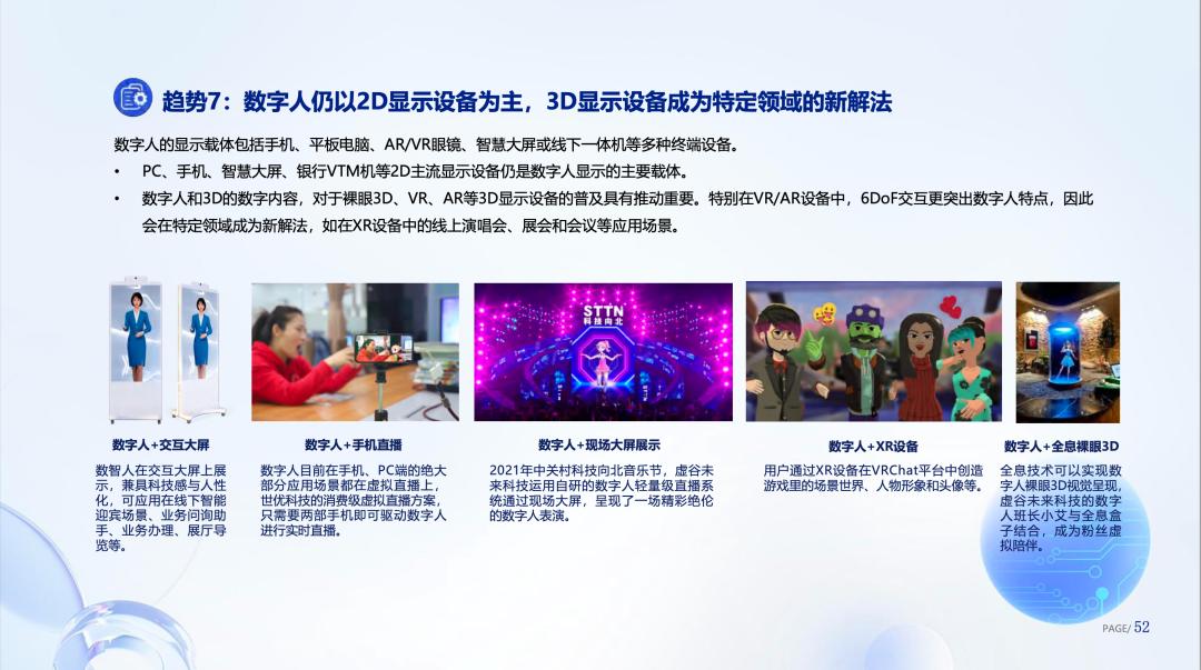 7. 硬件载体:数字人仍以2D显示设备为主,3D显示设备成为特定领域的新解法。