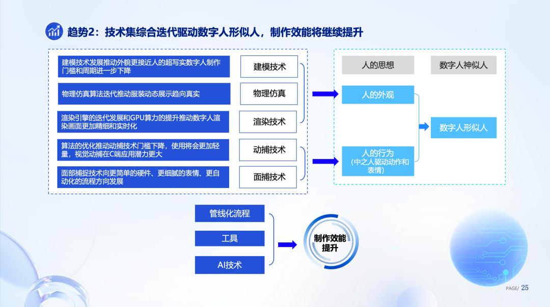 趋势2:技术集综合迭代驱动数字人形似人,制作效能将继续提升。