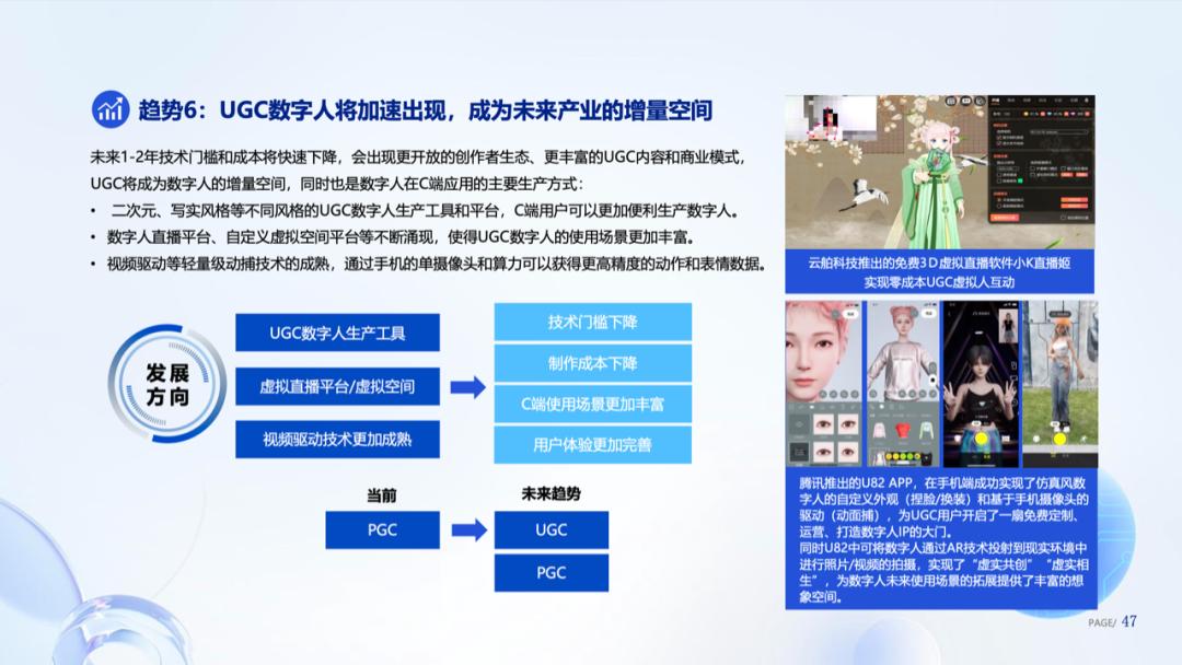 趋势6:UGC数字人将加速出现,成为未来产业的增量空间。