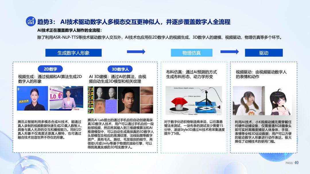 3. AI赋能:AI技术驱动数字人多模态交互更神似人,并逐步覆盖数字人全流程。