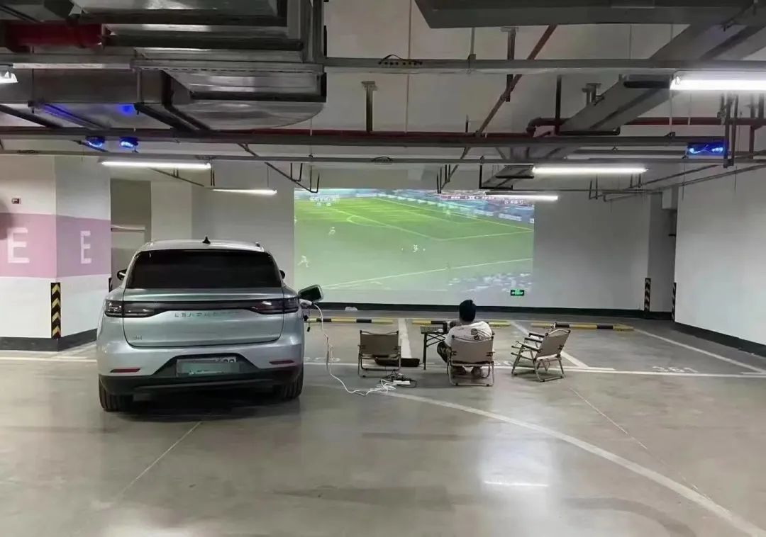 在车里看球也是同样的道理。密闭的独立空间、优质的车载音响,再加上舒适的按摩座椅。