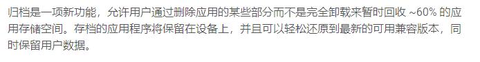 所谓的“应用归档”,能够让用户在通过应用商店卸载某个App时,保留那个App的数据。