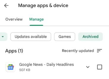 咱们也不用担心找不到归档后的App,谷歌应用商店专门给“归档”开了个专栏。