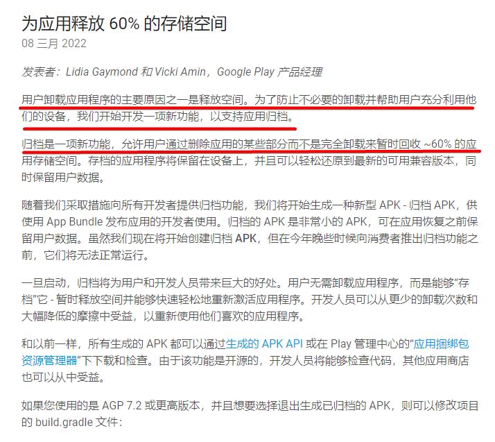 因为国内应用商店没采用AAB格式,导致“归档”功能无法铺开,小存储手机看着日益发胖的App叫苦连天。