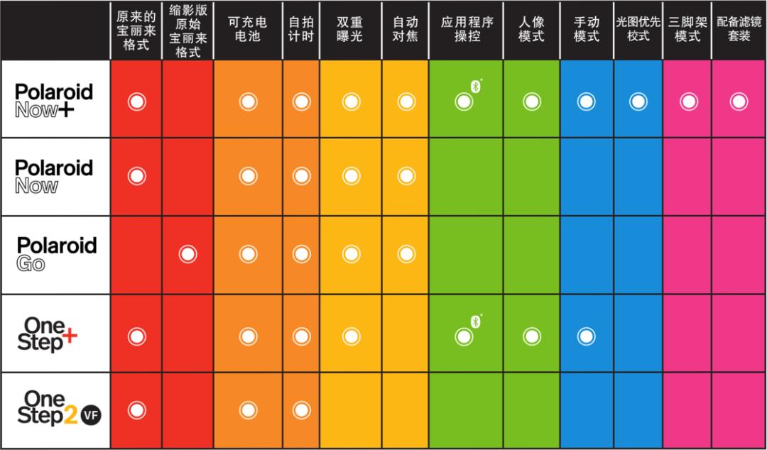也正因如此,目前我们在宝丽来官网所能购买的相机型号并不多,但胜在功能多样、年份较新。如果你偏好在老电影看到的复古机型,则可以到二手市场或者通过第三方淘。在这部分,我主要是根据官方仍有售卖的机型进行对比,为想购置宝丽来的伙伴提供参考。