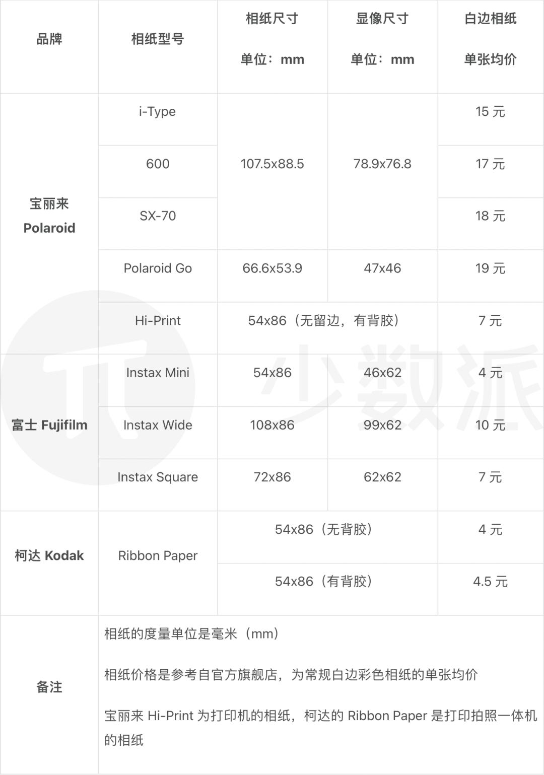 因此,在了解具体的相机型号前,让我们先来看看目前市面上主流的相纸型号:
