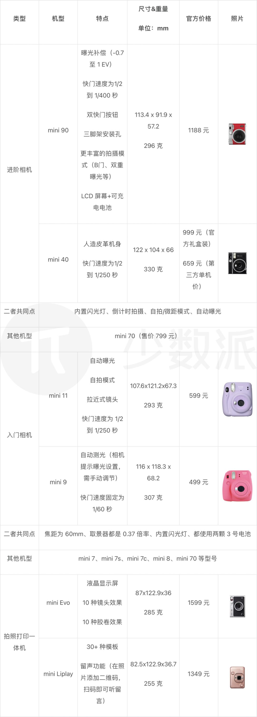 Instax Mini(迷你):选择多样,新手友好