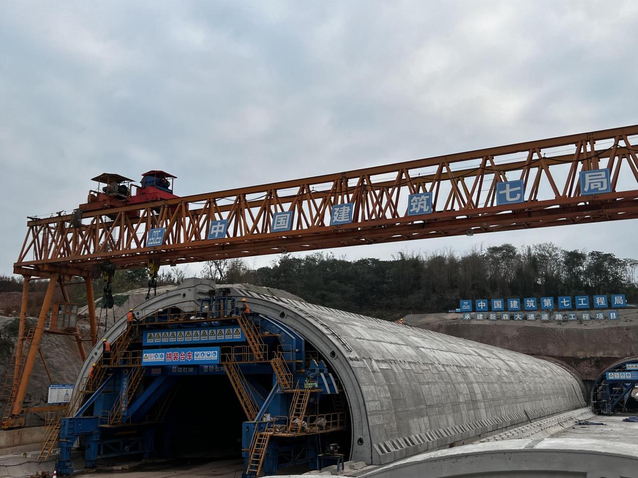 在金凤镇,伴随着吊装模具的龙门吊雄威的轰鸣声,科学城新森大道项目装配式隧道预制构件日生产实现5片、日拼装实现6片,项目建设跑出“加速度”。金凤镇供图