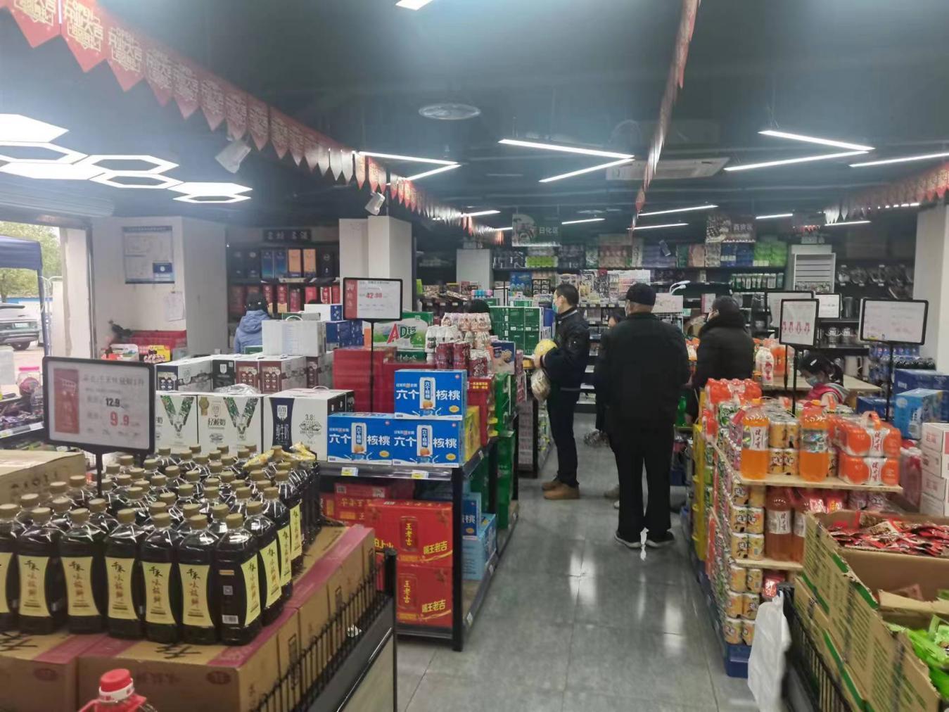 12月2日,含谷镇裕安佳园小区外的超市恢复正常经营,居民正在挑选货物。含谷镇供图