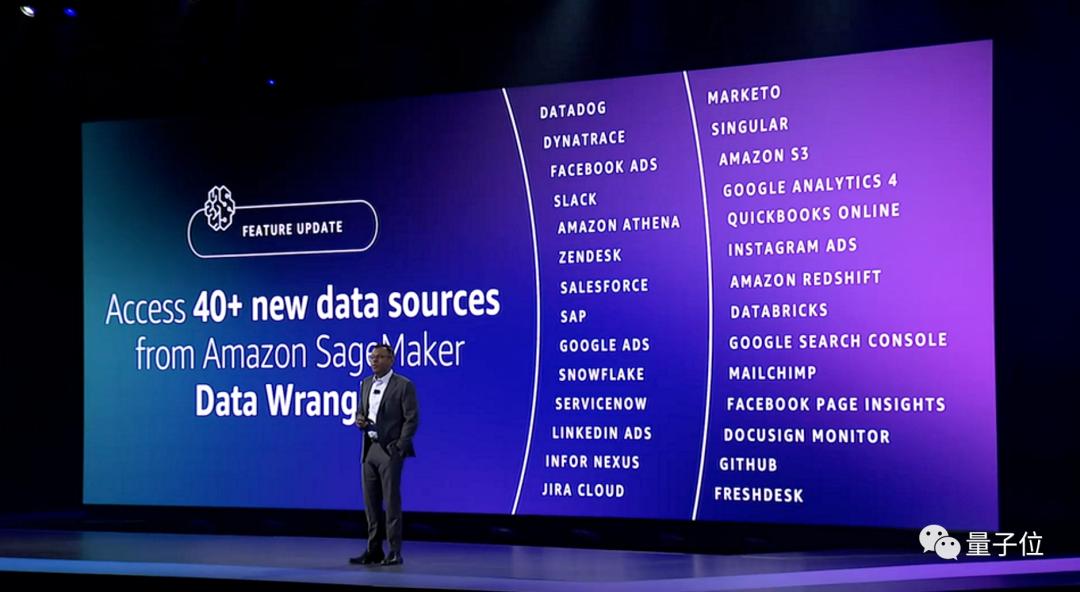 接下来是Amazon SageMaker Data Wrangler再次新增40多种新的数据源,可将汇总和准备机器学习 (ML) 数据所需的时间从数周缩短至几分钟。
