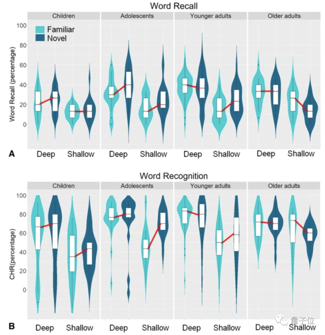 儿童、青少年和中青年更换了环境后,记单词的表现总体都更好(完成深度编码任务中青年除外)。