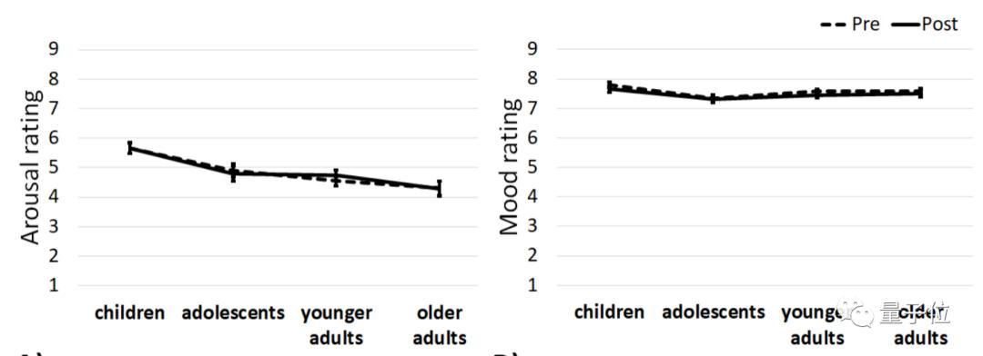 数据分析结果显示,不管是否更换新环境,大伙儿的心情看起来都无明显变化,只有儿童组稍高一点。