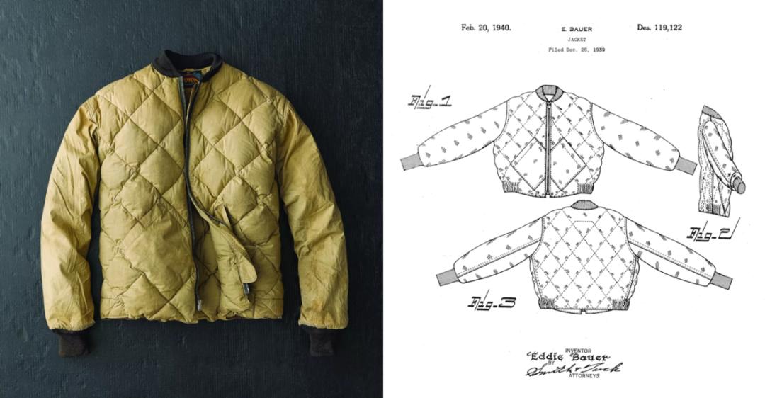 1935年,美国户外冒险人士Eddie Bauer在仲冬钓鱼时因体温过低险些丧命。此次意外让Bauer意识到市场上缺乏足够轻便保暖、同时防水的夹克,以充分保护人体免受低温以及其他恶劣气候的影响。在与多个鹅绒供应商进行交流后,第一件羽绒服Skyliner于次年诞生,并在1940年获得专利。
