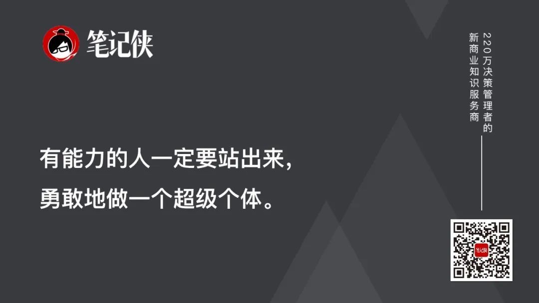 在未来,很多人的创业可能不再是以一个公司的存在,而是以个体价值存在。因此,个体价值公司化或者公司价值个人化,将是未来不可逆的趋势。