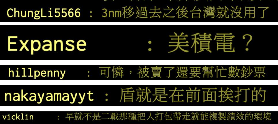 显然,并不是所有台湾本地人都觉得这是一件好事。一部分台湾本地人认为台积电搬迁属于被迫,被卖了还在帮人数钱,美国人一旦掌握了3nm芯片的生产能力就会立刻抛弃台积电。