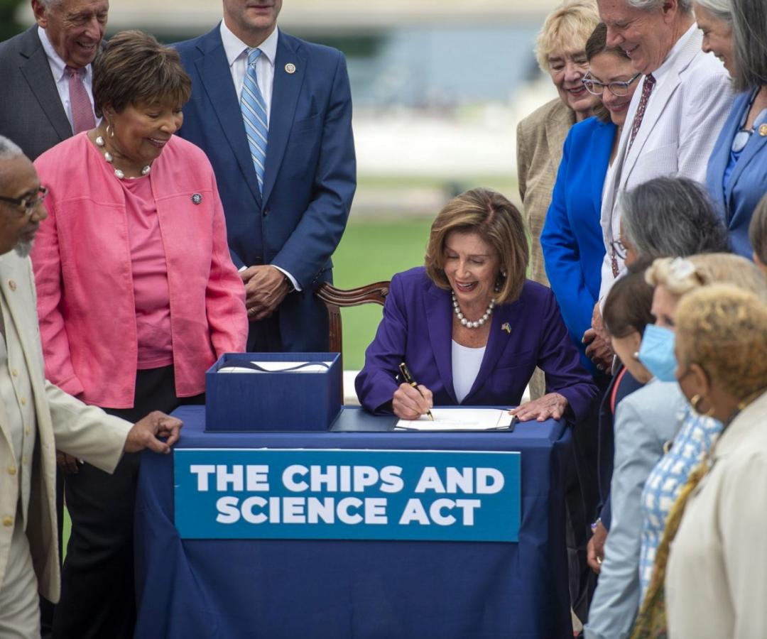 另一件事情就是芯片法案,“芯片法案”全称“芯片和科学法案”,是美国参众两院于2022年7月前后通过的一项法案。它授权美国政府未来五年内支出2500亿美元来推进半导体产业的发展,是美国有史以来最大的一笔“五年研发预算”。其中,半导体制造业分到了527亿美元的补贴,同时还能给芯片企业的工厂提供240亿美元的免税额度。