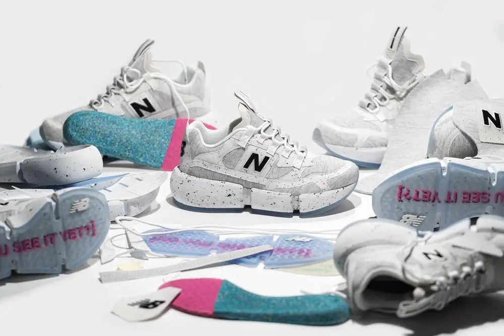 New Balance 和 Jaden Smith 联手推出的 Vision Racer ReWorked,使用的材料是回收混制而成的再生资源 Spinnex 纤维和 EVA 回收料。