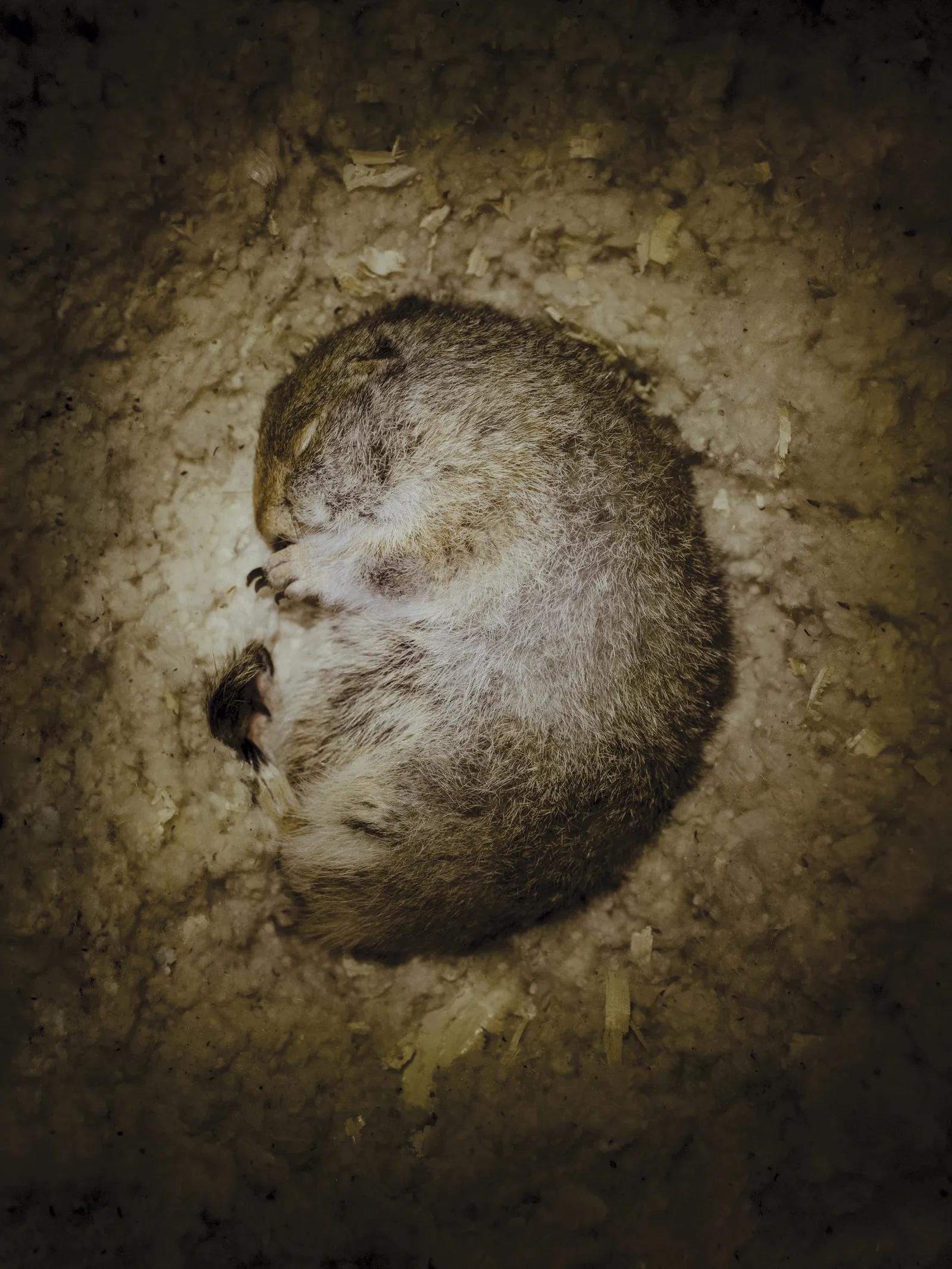 1992 年的一天,一颗行星正在以约每小时 500000 英里的速度绕银河系飞驰,在它的北极附近的一间实验室里,凯利·德鲁(Kelly Drew)正忙着检查一些鲑鱼脑。当在阿拉斯加费尔班克斯大学(University of Alaska Fairbanks)大厅另一头的动物生理学教授布莱恩·巴恩斯 (Brian Barnes)突然出现在她的长凳旁时,她的专注被打破了。露出恶作剧微笑的他,请职业生涯早期曾是神经药理学家的德鲁伸出手,准备迎接一个惊喜。片刻之后,她感觉手掌上多了一个坚硬的、毛茸茸的肿块。那是一种棕色的啮齿动物,长着匕首一样的爪子,但现在已经蜷缩成一个严实的球体,摸起来冷冰冰的,德鲁以为它已经死了。令她惊讶的是,巴恩斯兴高采烈地解释说,其实它非常健康。