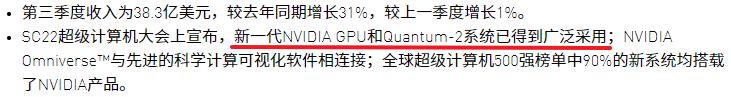 比如收入后面紧接着就写到,新一代 NVIDIA GPU 和Quantum-2 系统已得到广泛采用。