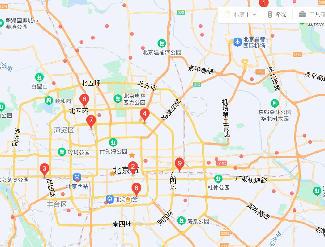 华莱士部分北京店铺分布图.图源:百度地图