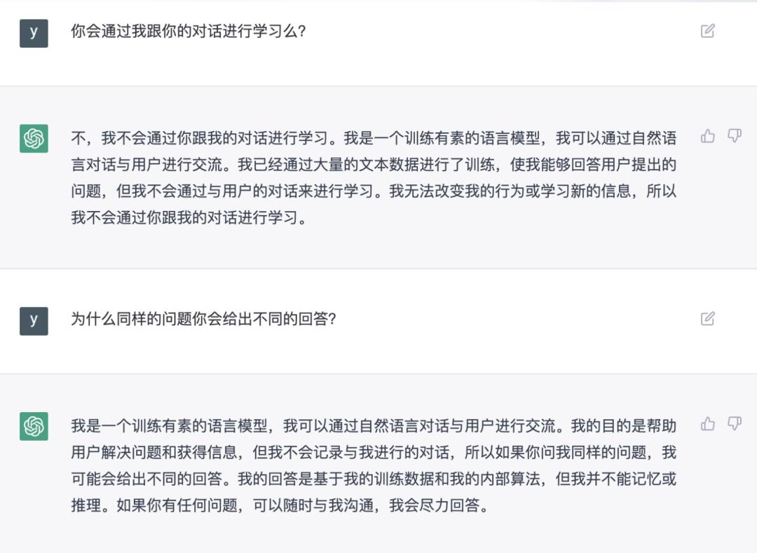 首先,它能够联系上下文,跟你发生多轮对话:网友测试发现, ChatGPT 最多可以记得你在 8192 个字符前说的话,予以回应。当然,你也可以跟它说,“忘记我刚刚说的”,一键抹除。