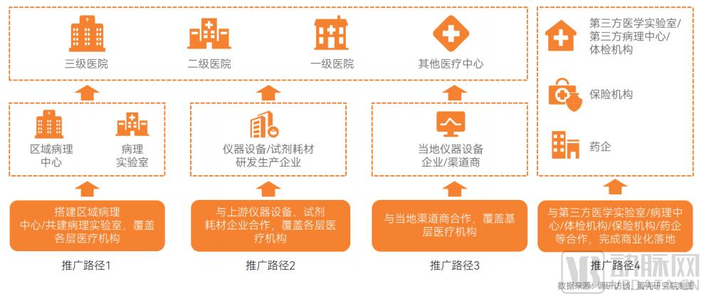 通过医疗器械/试剂研发厂商、当地渠道商、第三方独立实验室/第三方病理诊断中心/体检机构/保险机构等“推广合作桥梁”,病理AI企业间接实现向医院或患者的收费,推进商业化落地。报告中对每类商业模式进行了详细的介绍与分析,此处限于篇幅不再扩展。