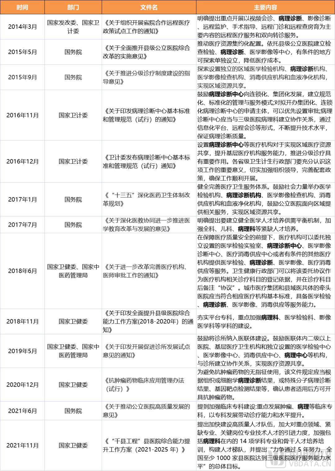 近年来,国家连续发文鼓励和扶持病理诊断行业的建设与发展,可以看到国家对我国病理诊断行业存在问题的重视以及推动病理行业向好发展的决心。