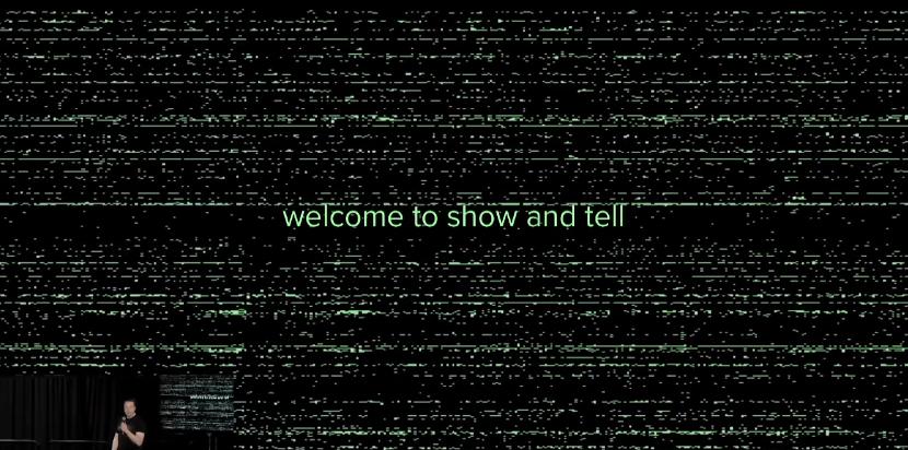 在12月1日的Neuralink“Show and Tell”活动现场,漆黑的展示屏上,正不断显示出向前滚动的绿色条码,像极了《黑客帝国》电影中由“0”和“1”组成的矩阵。在画面正中央正缓慢的闪出绿色的“欢迎来到展示和讲述活动”(Welcome to show and tell)一行字。