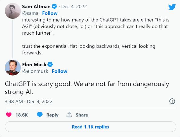 目前马斯克的主要精力依然在对社交网络公司推特的改革中,他在2018年离开了OpenAI的董事会,但他对这种病毒式的现象发表了看法,称其 “好得吓人”。他曾在一篇推文中表示:“ChatGPT好得吓人,我们距离优秀到危险的AI已经不远了。”