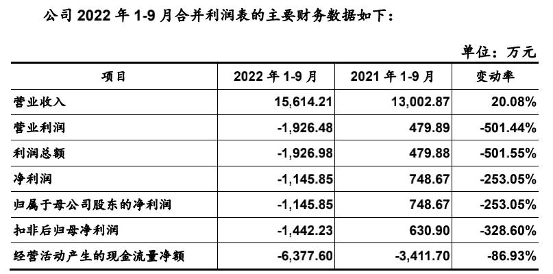 2022年前3季度,公司收入1.56亿,同比增长20.08%;归母净利润由748.67万降至-1145.85万,同比下滑253.05%。