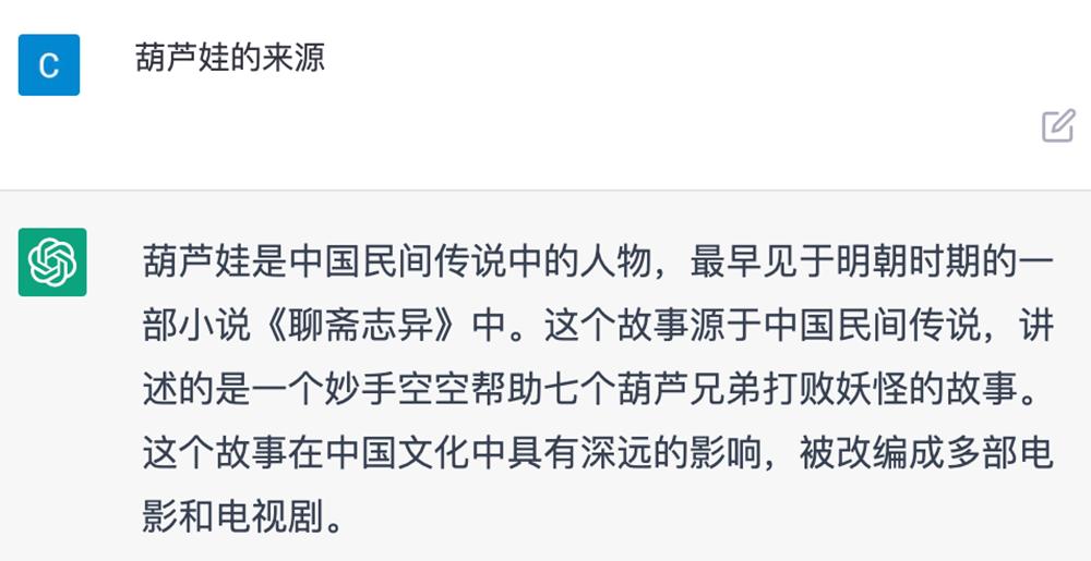 问中国文化相关问题,ChatGPT经常给出一些令人费解的错误答案:比如问明代前七子是谁,它列举了7位明代皇帝;问葫芦娃的来源,它扯到了《聊斋志异》。