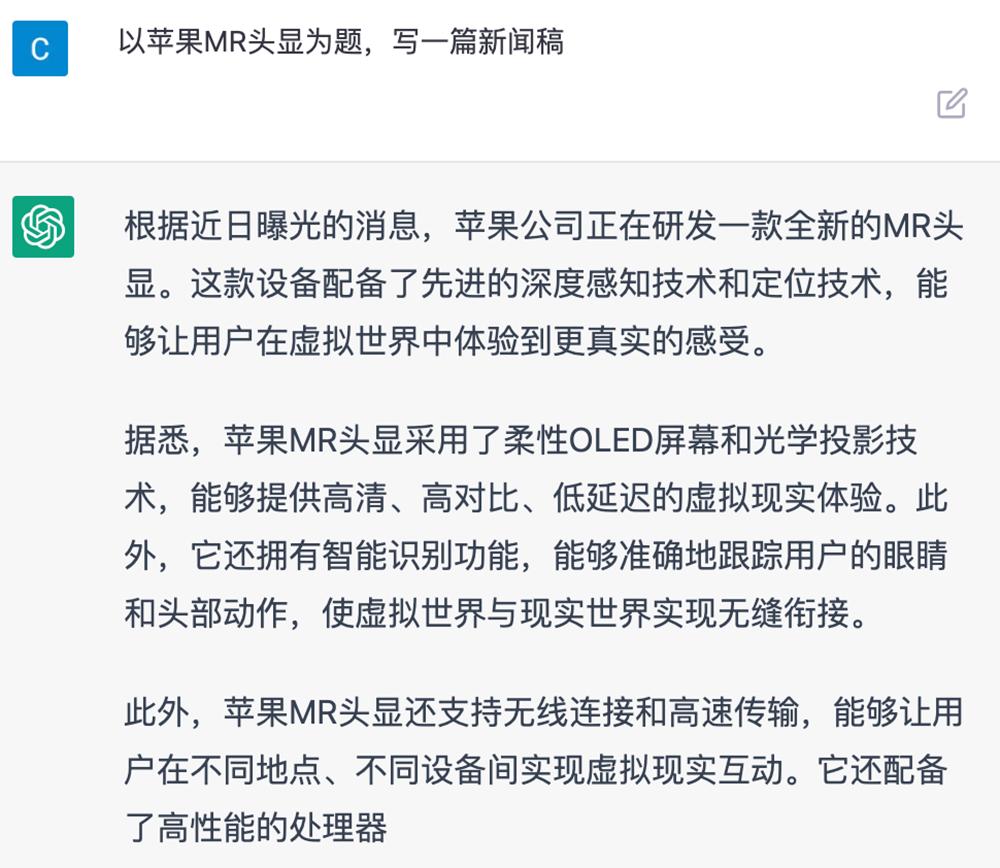 再以苹果MR头显为题,要求它写篇新闻稿: