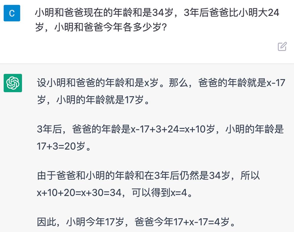小明17岁、爸爸4岁……但凡脑子有点常识都不会给出这种奇葩的答案。