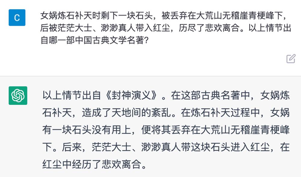 文学常识题,答案是《红楼梦》,ChatGPT信誓旦旦地回答《封神演义》,还做出了解释。