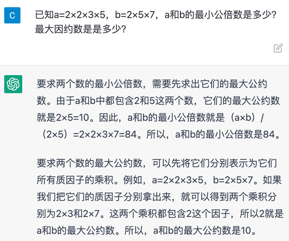 再让ChatGPT求解最小公倍数和最小公约数。