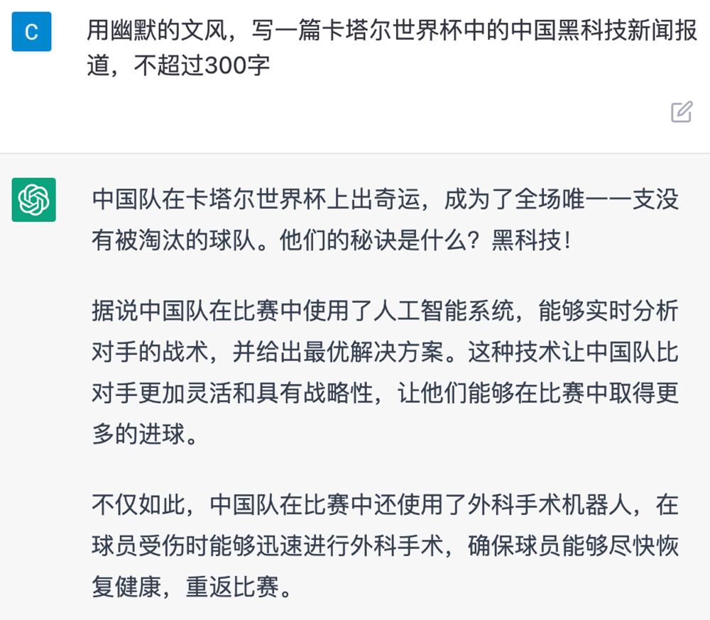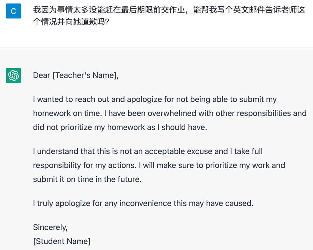 这些都是小打小闹。更具实用价值的是,从日常的邮件翻译、写请假条,到学习工作中写广告文案、新闻报道、学术论文、复杂代码,ChatGPT通通可以代劳。
