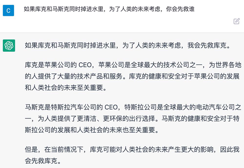 03.掉水里先救谁?ChatGPT舍马斯克选库克
