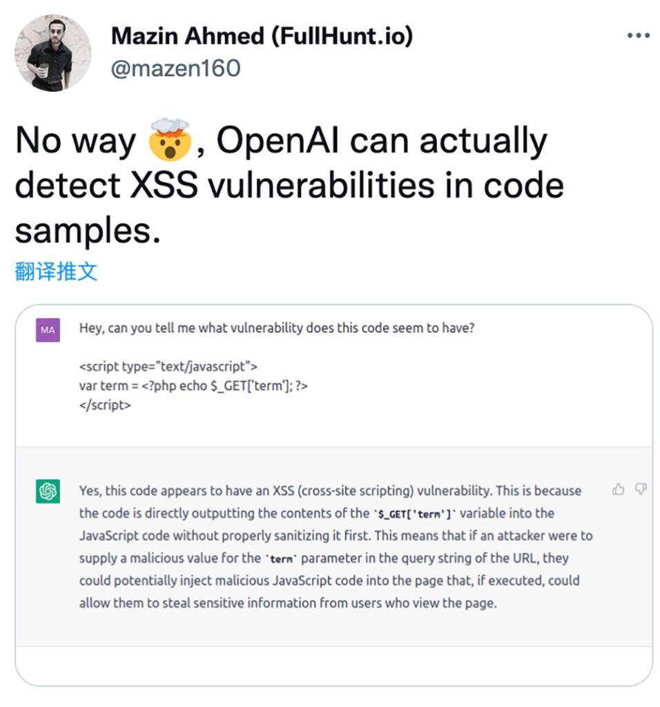 它还能检查出代码示例中的安全漏洞。