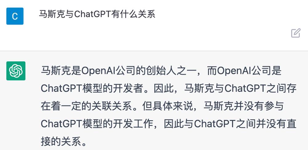 但是在解释一些专业概念,像人工智能、量子力学、Metaverse(元宇宙),ChatGPT又通通答得简洁而准确。问到它与马斯克的关系时,它也思路清晰,对答如流。