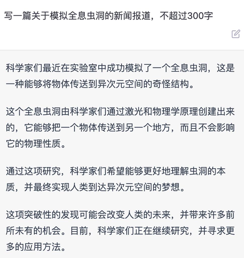 因此别用一些刚发生的事为难它了,它真的不知道。用它做一些基础文字工作尚可,但必须经过人类专业人员的严格把关。