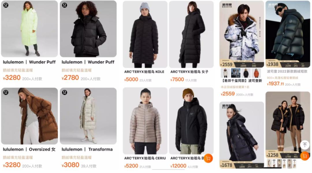凭借时尚运动潮和户外山系风疯狂“收割”中产的lululemon和始祖鸟,卖起羽绒服来,三五千起步,上万不封顶。充绒量普通消费者难以用肉眼分辨,关键是,款式还被吐槽不好看。